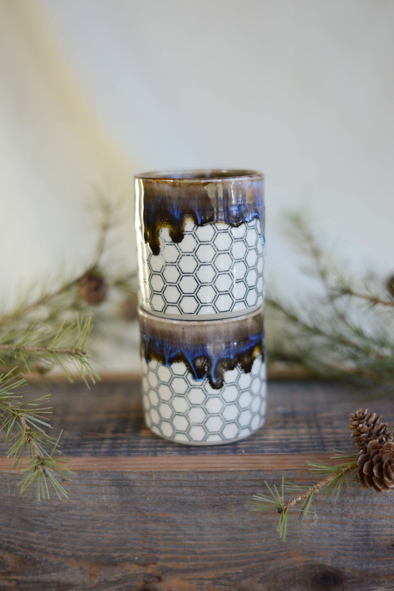 Honeycomb Transfer Espresso Set | Grey/Purple Glaze