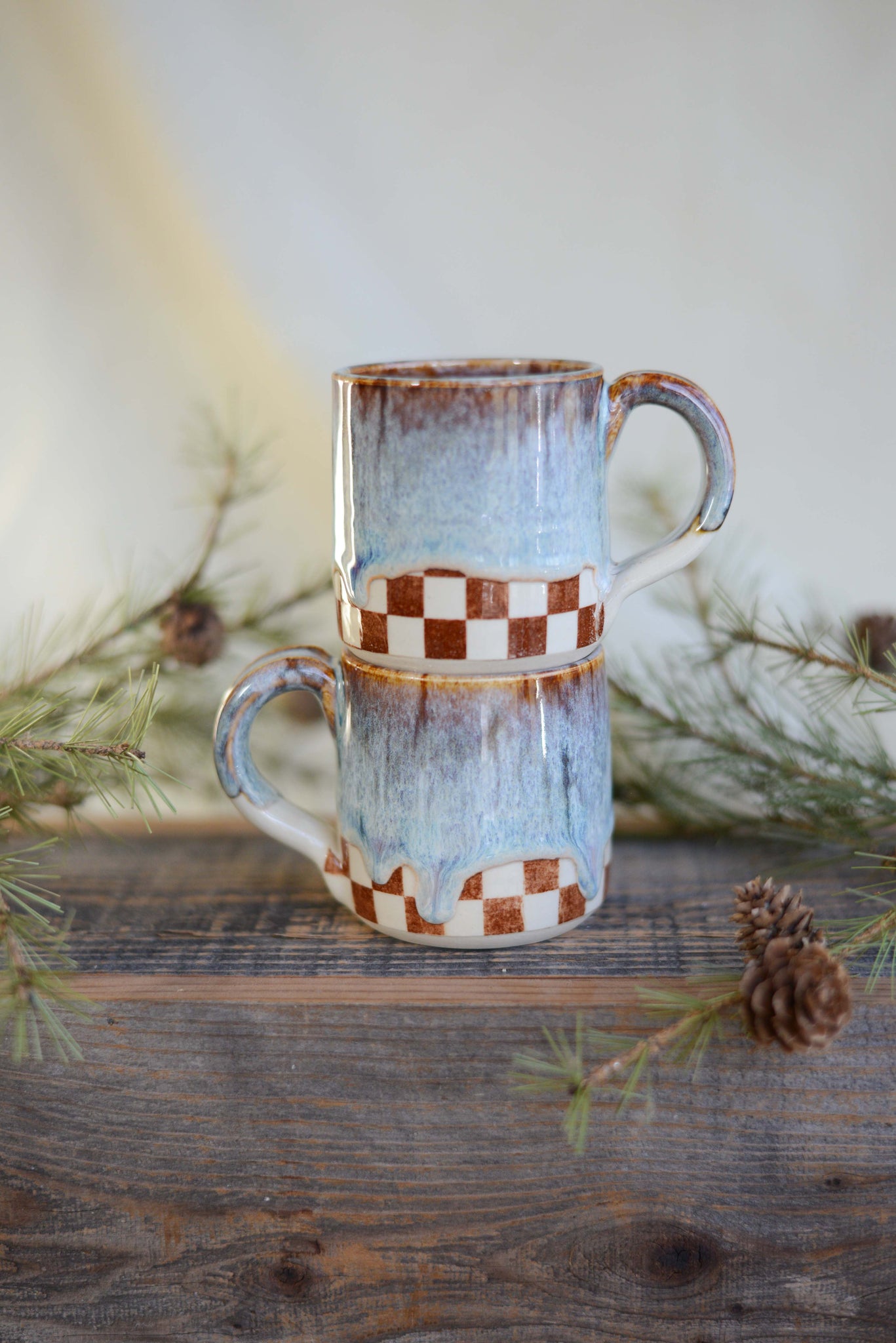 Checkered Transfer Espresso Set |  Blue Multi Glaze