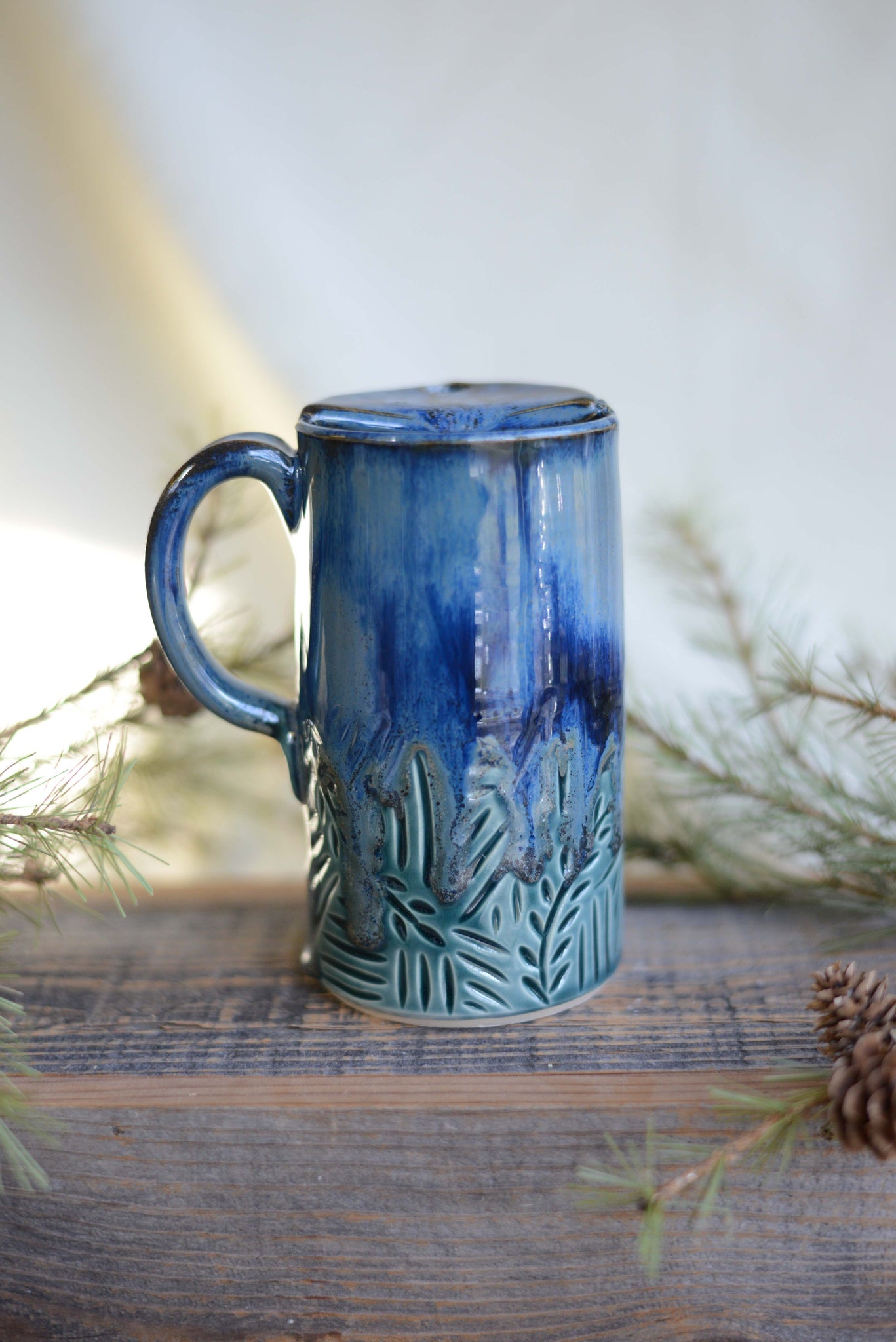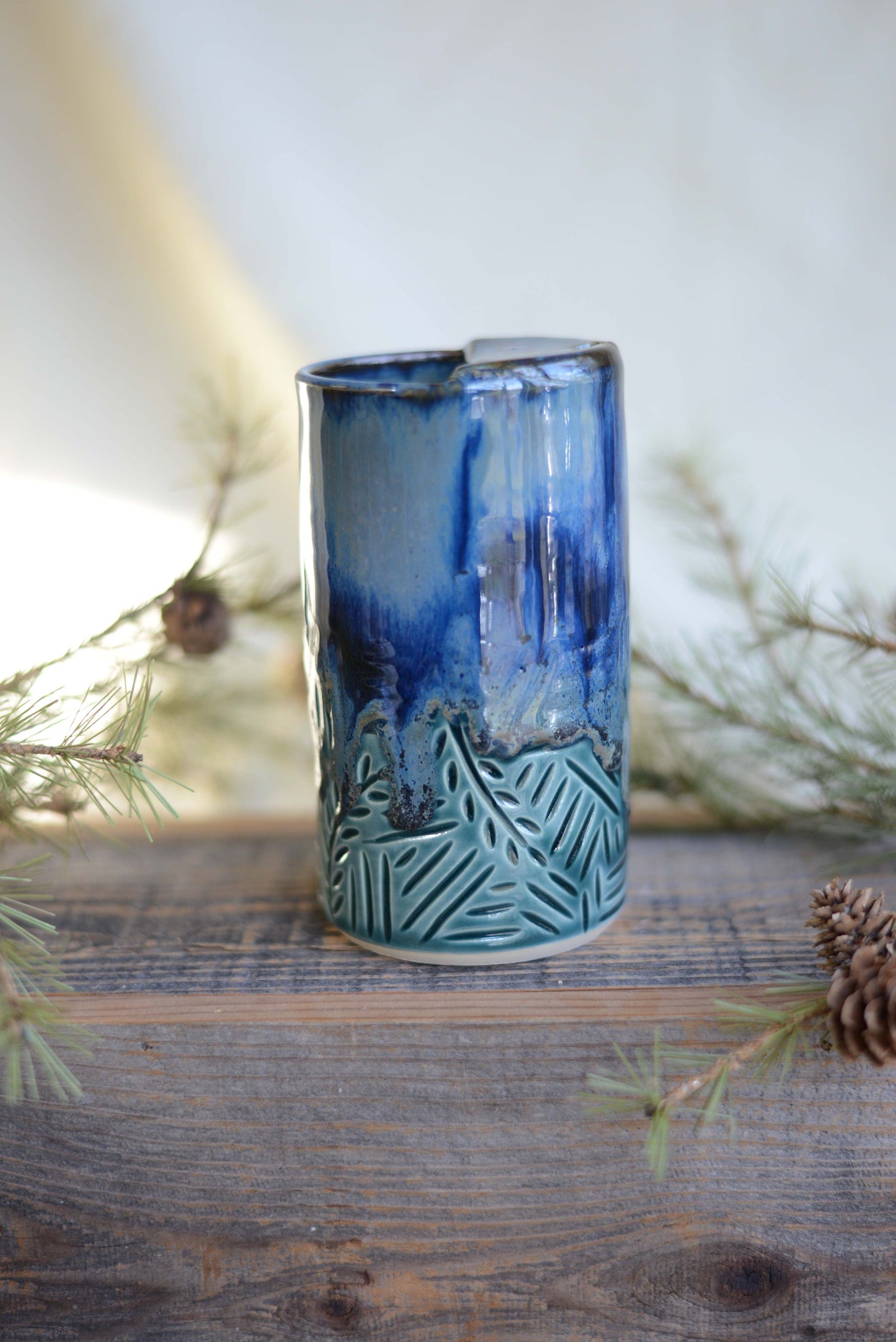 Carved Travel Mug | Dark Blue + Teal Glaze